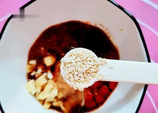 步骤3半勺糖、适量的盐、1小勺芝麻。